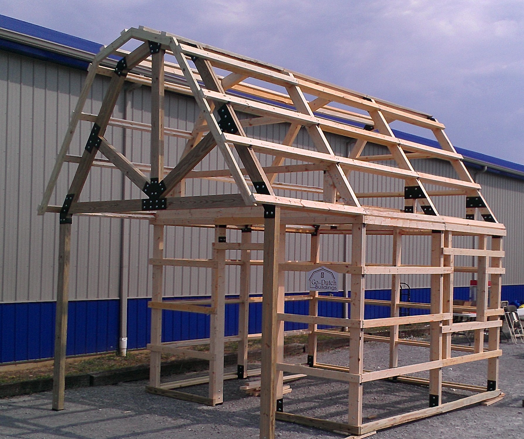 Go-Dutch Buildings is the result of our 15 plus years in the construction and building materials trades. We partner with you by "pre-building" your building, making assembly as easy as possible. Our goal is to provide a framing kit that can be erected by workers of average ability in about a weekend. Each component is factory cut, drilled and fitted so that the installer simply bolts or screws the pieces in their place.The building is then ready for roofing, siding, doors and windows, etc.