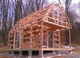 - Glue laminated posts, rafters and beams factory cut to length and angle,